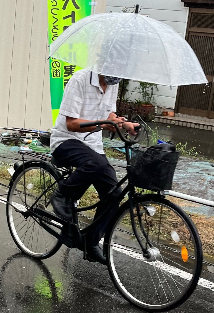 But this makes bicycles twice as wide, and also makes water gush off the umbrella onto passersby. On a crowded sidewalk, since the bicycles typically do not turn out of their way for pedestrians, you have to zigzag back and forth to avoid them. This is hard enough when the weather is clear, but when it is raining the cyclists – holding their umbrellas – will be blocking the pavement even more than on sunny days.