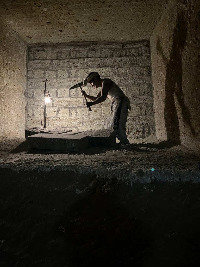 The stone is soft enough that you could mine it by hand. Until the middle of the 19th century this was the norm, and each block of stone was laboriously cut from the rockbed and carried up to the entrance by hand. The Oya Museum, housed in the old mines, have huge rooms cut out of the stone – by hand.